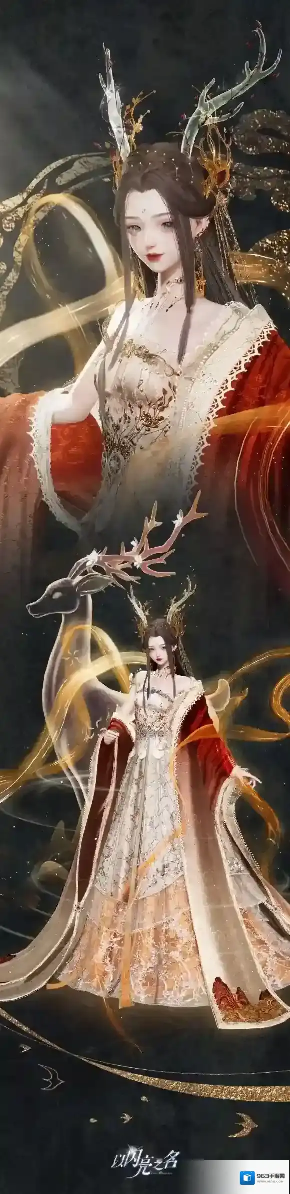 缥缈彩云间,福禄纳吉祥,晶莹流光鹿角现于套装之上,一同感受中式神话的纯粹之力;充满敦煌气息的国风高定裙身设计将大家的思绪引向那片来自遥远东方的艺术传承;特效福鹿与角色交相互动为宛若沉浸金色梦境中,在迎春之际与大家同在。