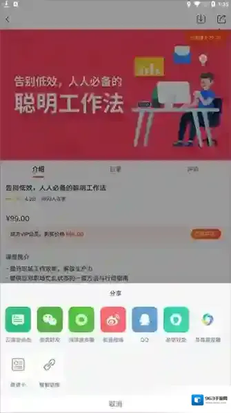 5、在页面中选择一种分享方式,将该课程分享给别人,别人通过你的分享购课即可赚钱。
