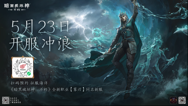 征服海洋,破开迷雾!5月23日,风暴的使者雾刃降临庇护之地,以激流冲破航线上的迷雾!《暗黑破坏神:不朽》全新服务器雾刃也将同日上线!现在扫描下方二维码预约新服,还能在新服开启前参与专属抽奖活动,有机会收获包含邮政礼盒、Zippo定制打火机、永恒荣耀礼盒、纪念徽章、大菠萝帽子和角色典藏卡在内的珍稀奖励!开服后前往新服,不仅能感受雾刃灵活多变的战斗风格,体验掌控风浪的华丽技能,随着冒险的推进和实力的提升,还能获得更多抽奖机会迎取幸运大奖!实力与运气双重加持,暴风与利刃伴随我身!