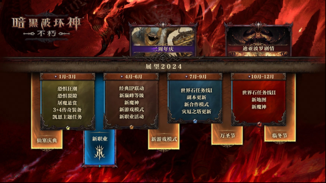 永远期待,不负热爱!昨日,万众瞩目的2024网易游戏520线上发布会完美落幕!作为重点亮相的游戏之一,《暗黑破坏神:不朽》在发布会上为广大玩家带来了关于庇护之地的最新消息。前所未有的全新职业雾刃,5月23日跨海来袭;两周年庆典蓄势待发,拉开夏日狂欢的序幕;迪亚波罗即将从地狱中归来,2024的庇护之地将被恐惧笼罩;新的主线故事、新的游戏模式……冒险前路挑战不止,一场盛宴的大幕正徐徐拉开!