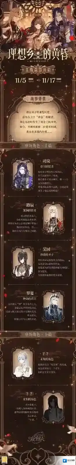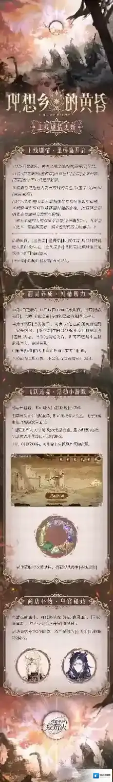 绘旅人新世界主线「圣杯篇」将于11月5日更新后启程,主线活动「理想乡的黄昏」和同名画廊开启,活动纪念开屏可免费获取。