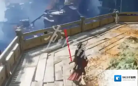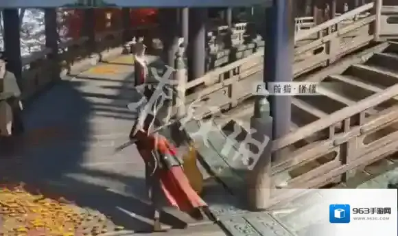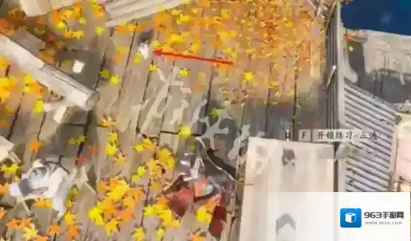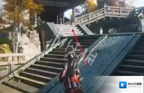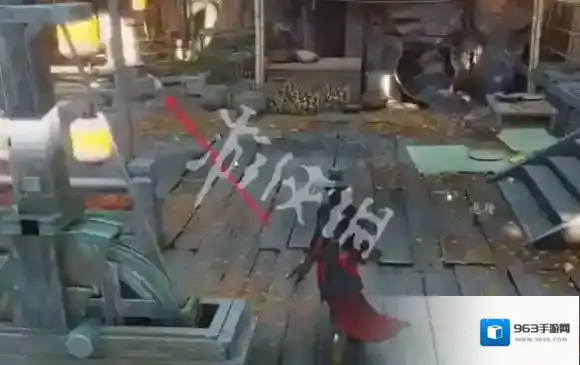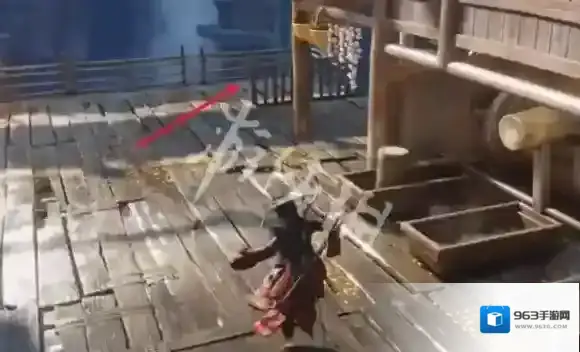 7、跳下来后,往箭头方向走,即可看到猫戏。