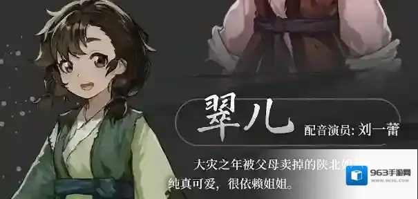大灾之年被父母卖掉的陕北姐妹之一,泼辣朴实,对妹妹翠儿关怀有加。