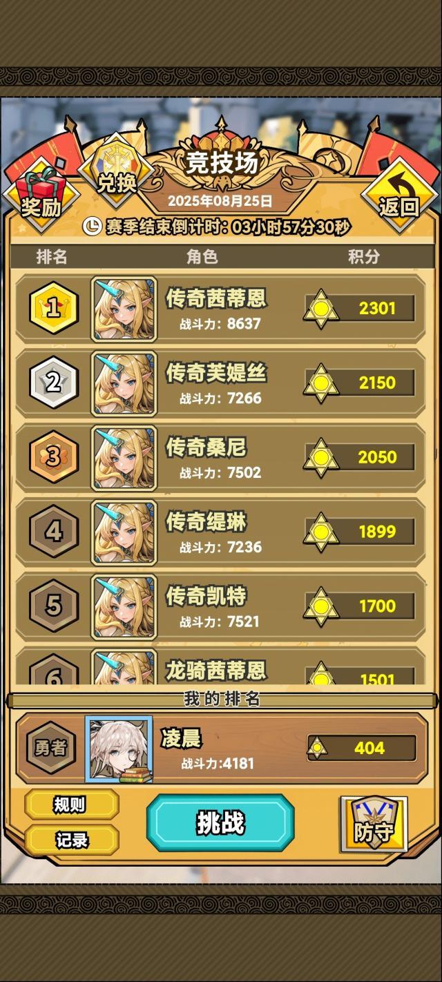 到这里前期基本上没有什么需要注意的了,竞技场可以留卷等下一期再打,因为这期要结束了每天拉满应该也打不到480到下一个排名