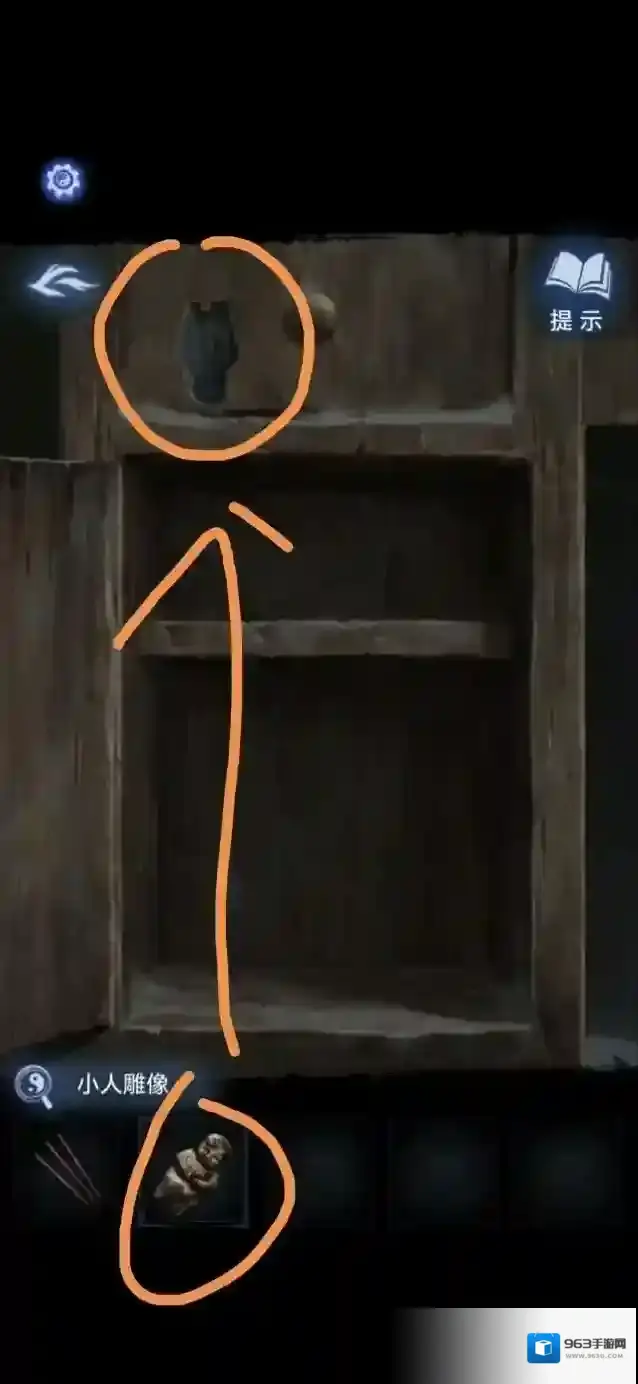 将小人雕像放在旁边房间里的柜子凹槽上,获得探头