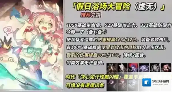 自带32%增伤,攻击后100%概率(需堆67%命中以保证稳定)给敌方挂16%易伤,持续2回合。