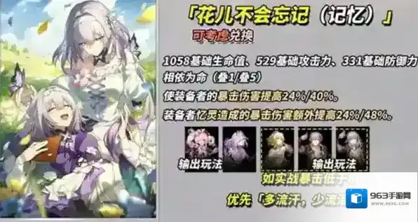 提供40%暴击伤害加成,忆灵暴击伤害再提升48%。