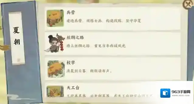 夏朝: 解锁 兵营系统,强化士兵用于保卫家园或开疆拓土!还会开启繁荣的 “丝绸之路” 雏形,进行远程贸易获取珍稀资源!