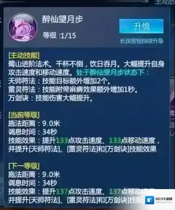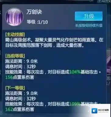 简评:蜀山技能CD较长,在前期可升级御剑术补充伤害,中后期技能点数较为紧俏,不建议升级普攻技能。