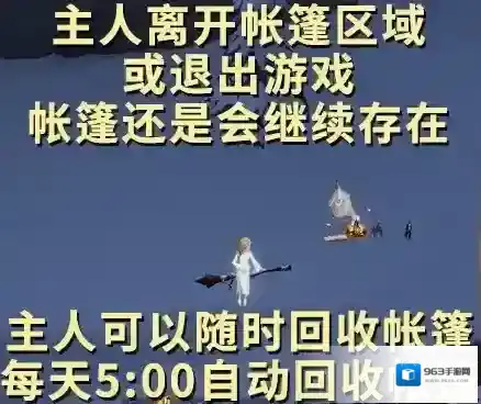 5、主人离开帐篷区域或退出游戏,帐篷还是会继续存在,主人可以随时回收帐篷,每天5:00自动回收帐篷。