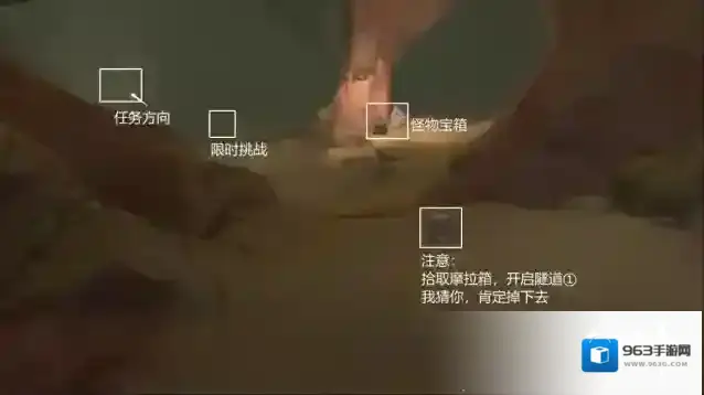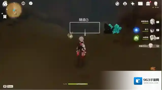 4、跟随仙灵,走到沙堆上,会有地洞出现,下落,前往隧道①。