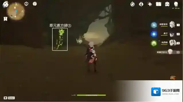 7、沿着小路绕过来,看到被藤蔓挡住的洞口,激活草元素方碑。