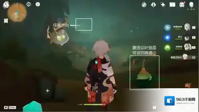 2、往下看,获得草神瞳,前往图中框出的任务方向。