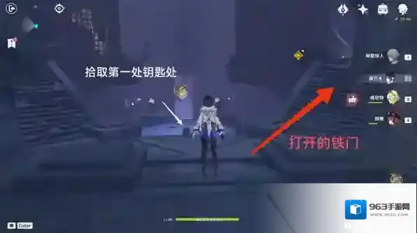 拾取后往左边楼梯走,走到平台,开门,此时之前看到的铁门打开