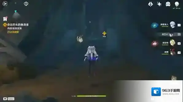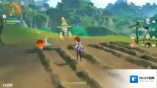 对话完成后开启新任务,跟上卡利贝尔(距离过远会失败,重新开始即可),跟着丘丘人走到尽头进入洞窟(秘境挑战)