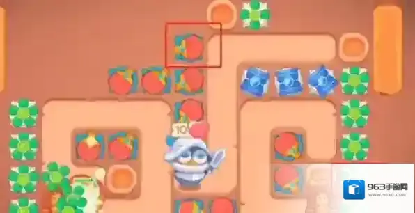 2、第二波右侧再加一风扇塔,中间加一球拍,滚滚兔出现,右侧加一风扇塔升一级,之后再加一个。