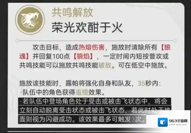 两个狼头之后,共鸣技能会被强化,点按即可释放,在这8秒内,如果切人,露帕还会留在场上