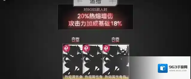 追猎可以提供对boss敌人的10%热熔增伤,如果队伍携带3名热熔角色,那么就会来到20%,并提供6%攻击,通过两次变奏最大提升18%