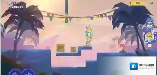 切换到大个子,跳到小矮子头上拾取娜娜丝梨饼。