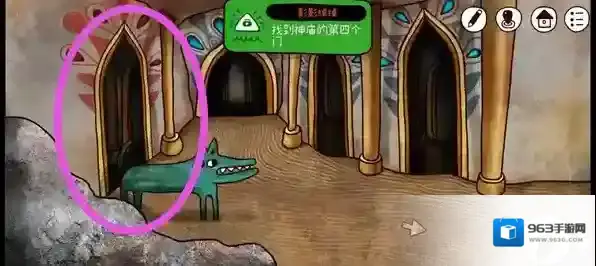 右边3扇门的宝石变为蓝色,进出顺序为,左左右右中中