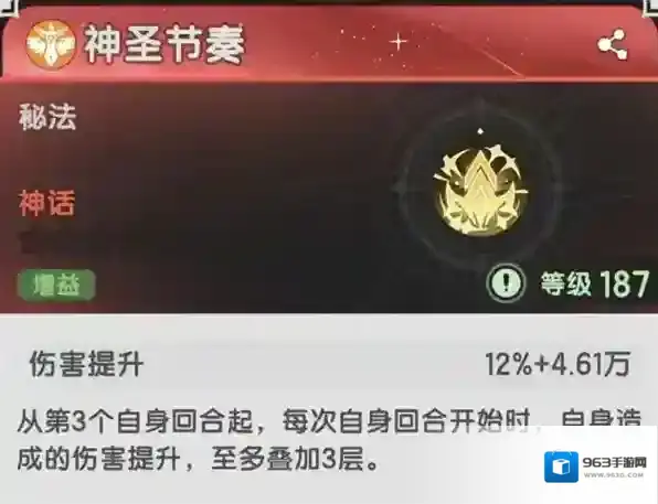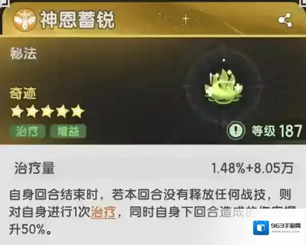 长线战斗不错的增伤技能,第三回合开始增伤,第五回合开始获得最高增伤,在骑士内战,混沌和圣兽中是非常好用的技能