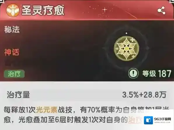 除非条件苛刻,但治疗量又不高,是个完全无用的技能,虽然光剑也能触发,但依旧不能抢救这个技能,带四个光元素技能然后把这个技能换成悲鸣之刃回的血远超圣灵疗愈带来的治疗量