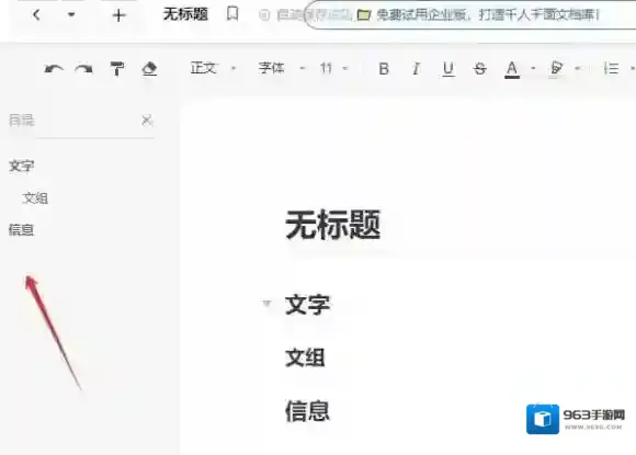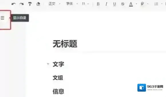4、在页面左侧的找到三横图标,将会显示出目录窗口,如图所示。