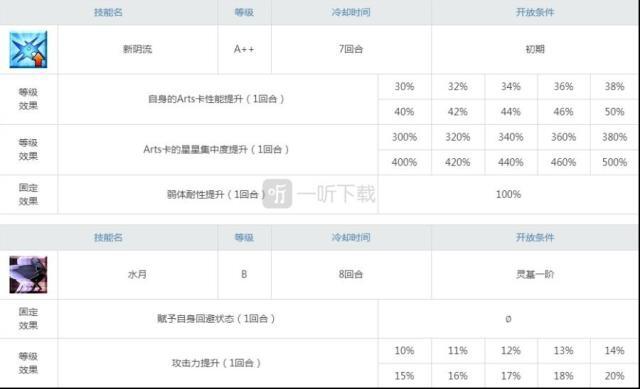 2技能的话,我们可以看到这个加攻幅度实在是偏低,同时也只持续一回合,所以在绝大多数情况下这个技能是留着闪避拿来应对敌人的高伤技能或者宝具的,在柳生的3个技能中2技能的升级优先度最低。