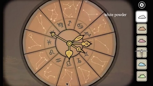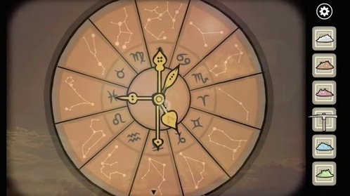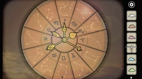 17.到石室一楼,在星座盘上将指针按照天秤、双鱼、巨蟹、射手、摩羯的顺序旋转,得到一把钥匙。