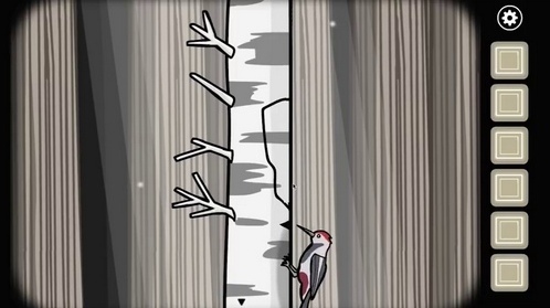5.出石室到左侧小路,查看右侧的啄木鸟,按照树枝分叉数量依次啄木,从上到下顺序为2314,得到一块棕色树皮。