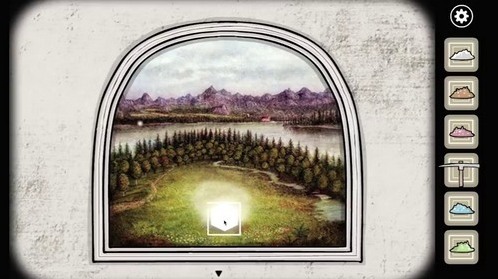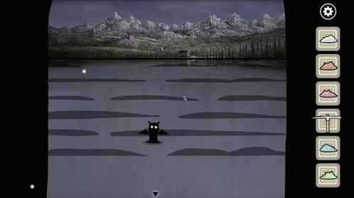22.窗户外可以看到猫头鹰雕像的位置,左右两侧的火堆控制猫头鹰左右移动,中间的火堆控制猫头鹰雕像前进,只有猫头前方是白色可通行的时候才能前进,如果前方是黑色河流则不能前进。通过火堆将猫头鹰雕像移动到腹地。