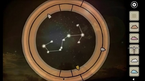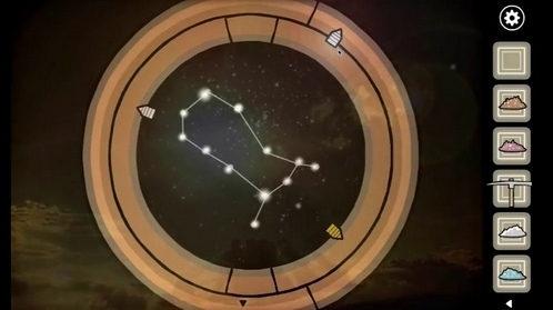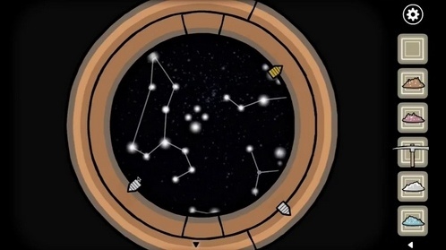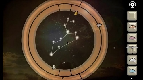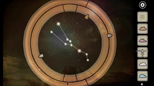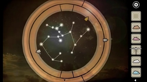 18.爬上梯子到石室二楼,查看望远镜,调节三个旋钮将星星对应到星座上,五个星座调节标准如下:
