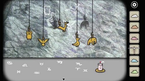 16.爬上楼梯来到石室二楼,用蜡烛照射挂饰让影子和墙上的形状对齐,蜡烛所在的位置就是动物对应的星座,星座依次是天蝎、双鱼、双子、射手、摩羯。