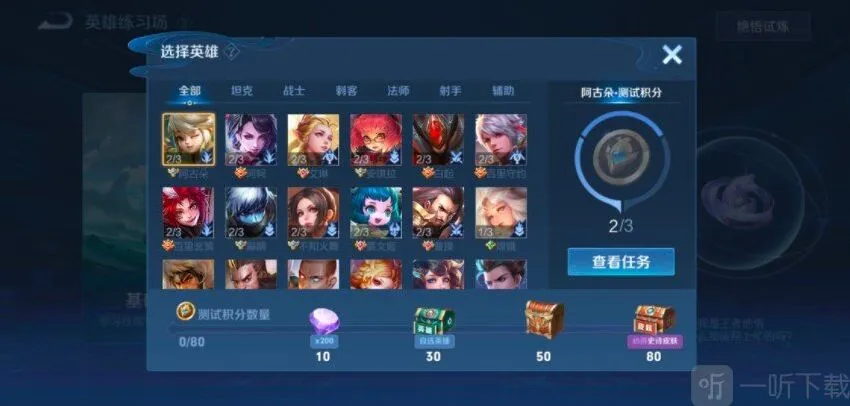 每个英雄都有三个任务,三个任务全部完成并领取奖励后,即可获得1个测试积分。