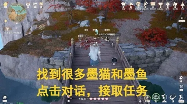 找到墨猫、墨鱼对话,领任务,再和“墨墨烟”对话进入下一阶段。