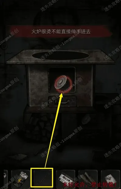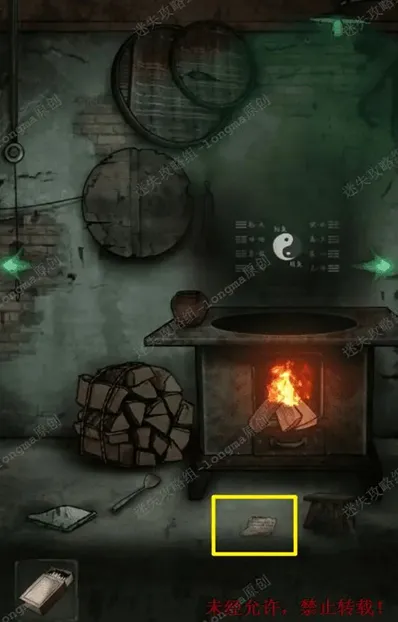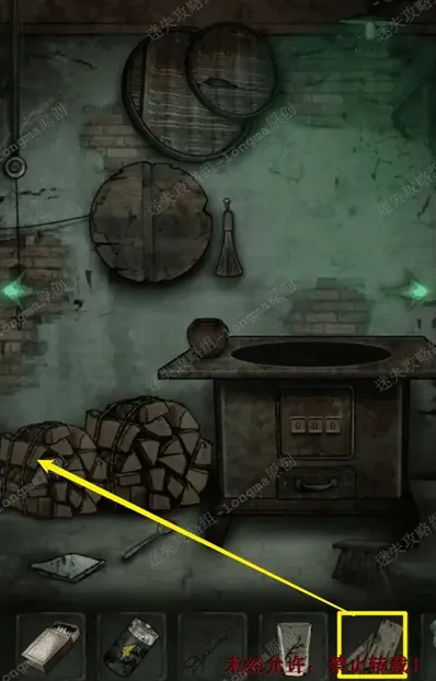 67.将木柴放入锅炉,使用火柴点燃,记住墙上出现的图案。