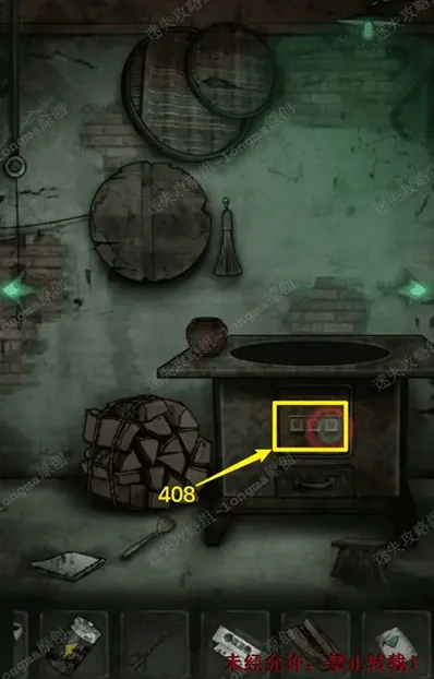 66.来到锅炉房,在锅炉上输入408,打开锅炉,使用火钳取走里面的收音机喇叭。