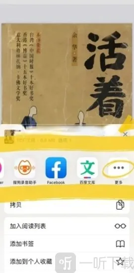 第三步:点击中间的分享的功效,还可以通过其它的app进行阅读。