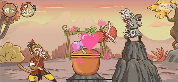 通关技巧:首先点击孙悟空,然后快速点击手,直到变成爱心的动作即可通关。
