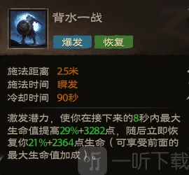 效果:激发潜力,使你在接下来的8秒内最大生命值提高29%+3282点,随后立即恢复你21%+2364点生命(可享受前面的最大生命值加成)。