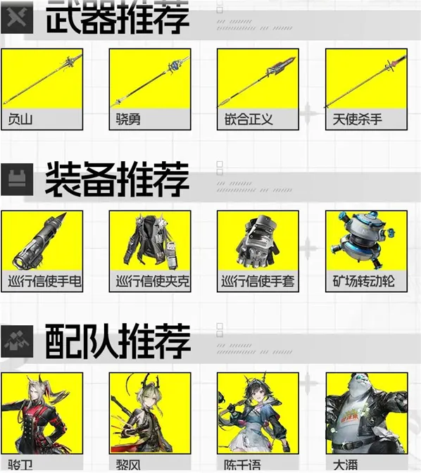 1、武器方面负山作为专武最为合适,次选可以选择骁勇,嵌合正义和天使杀手可以用来过渡。