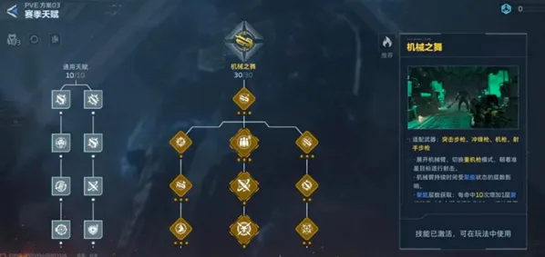 10、赛季天赋选择机械之舞,开启后展开机械臂进入重机枪模式,持续压制输出。命中/弱点快速叠聚能(最高10层),层数越高持续越久。技能期高频触发追踪飞弹,额外补充伤害!而且基础暴击率增加15%,暴击伤害增加15%完美联动振弦暴击,持续输出+爆发+清场三不误,站桩打BOSS秒伤拉满。