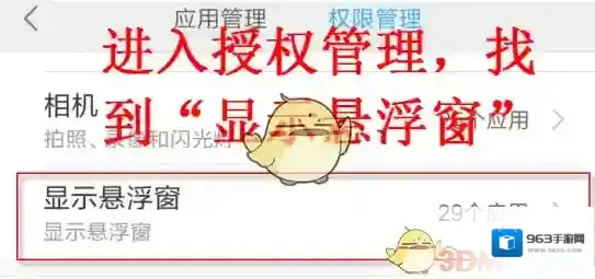 4、在授权管理中找到“显示悬浮窗”,点击打开