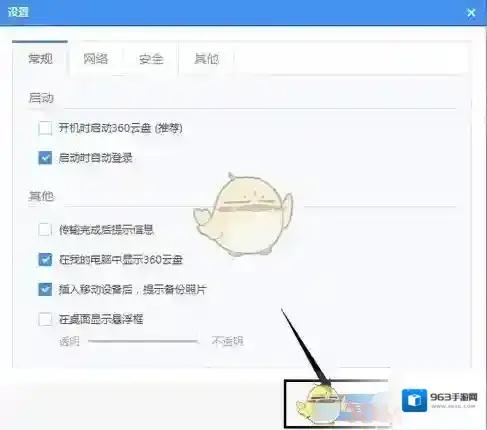将“开机时启动360云盘”前的对勾去掉。