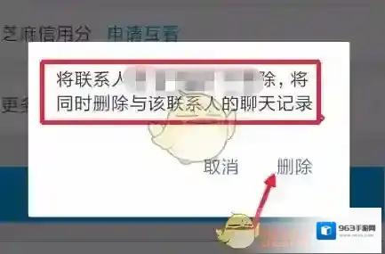 6.点击删除按钮后,系统会给你一个提醒,是否要删除好友,点击删除确定即可。