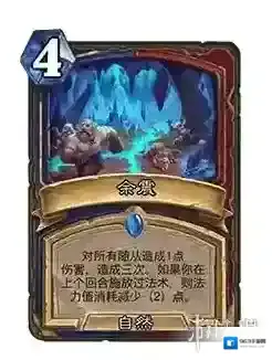 新:对所有随从造成1点伤害,触发三次。如果你在上个回合施放过法术,则法力值消耗减少(2)点。