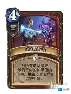 新:[4费] 对所有随从造成等同于你的护甲值的伤害。锻造先获得3护甲值。