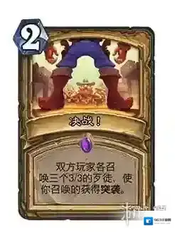旧:召唤两只2/5并具有嘲讽的野兽。在本局对战中你每发现过一张牌,本牌的法力值消耗便减少(1)点。