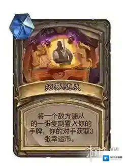 新:将一个敌方随从的一张复制置入你的手牌。你的对手获取3张幸运币。