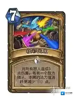 新:[7费] 对所有敌人造成3点伤害。每有一个敌方随从,本牌的法力值消耗便减少(1)点。